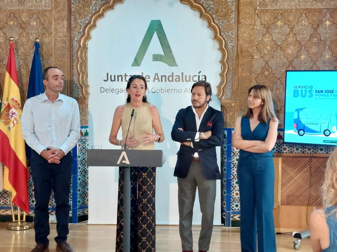 Un año más, el Consorcio de Transporte Metropolitano del Área de Almería será el encargado de gestionar el servicio de autobús a las playas del Parque Natural Cabo de Gata Níjar que, en la zona San José, tienen acceso restringido durante el periodo estival. La presentación ha contado con la asistencia de la delegada de Gobierno, Aránzazu Martín, la delegada de Fomento, Dolores Martínez, el delegado Territorial de Sostenibilidad, Medio Ambiente y Economía Azul, Manuel de la Torre, el concejal de urbanismo de Níjar, Manuel Herrero, el director gerente de Consorcio de Transporte, Luis Miguel Carmona, el director del Parque Natural Cabo de Gata Níjar, Salvador Parra, y la gerente del Autocares Bernardo, Lola Hernández.
