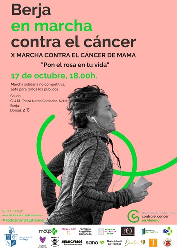 La marcha está impulsada por la Junta Local de la Asociación Española Contra el Cáncer y cuenta con la colaboración del Ayuntamiento de Berja. Se trata de una caminata no competitiva y apta para todos los públicos que saldrá desde el CUM de Berja para continuar por la Avenida José Barrionuevo Peña, calle Manuel Salmerón, calle Agua para finalizar en la Plaza de la Constitución, donde se leerá un manifiesto y se realizarán varios sorteos.