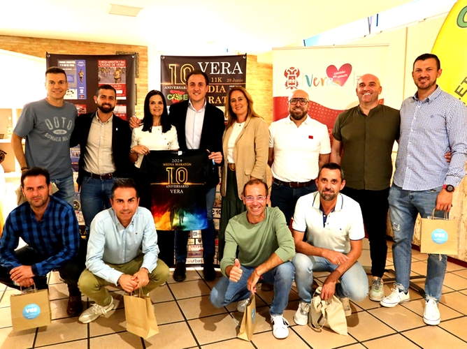 . El Ayuntamiento de Vera, y el Club Atletismo Sur Este han presentado en Hotel Restaurante Terraza Carmona, la décima edición de la Media Maratón de Vera 2024, en un acto donde han intervenido el alcalde de la localidad, Alfonso García, el concejal de Deportes, Antonio Soler, y la diputada provincial Esther Álvarez, junto con la actual presidenta del Club, Reme Martínez Serrano, además de los presidentes del Club Atletismo Sur Este que durante estos diez años de la prueba han presidido el club local, alma en la organización del evento junto al Ayuntamiento de Vera. Durante el evento, magistralmente presentado por la componente del Club, María José Ruiz, se presentó la camiseta oficial de la prueba y se anunció que toda la recaudación de las carreras infantiles se donará a la fundación UNO ENTRE CIEN MIL que lucha cada día por ganar la batalla a la leucemia Infantil y se contará como invitado a la carrera con Francisco Martin Pérez, conocido como tractorman, impulsor de esta colaboración.