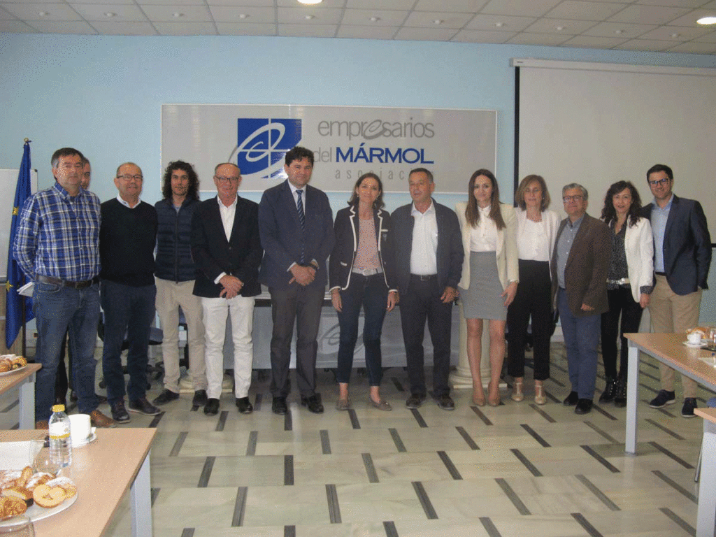 A continuación se desplazaron a la Sede de la Asociación de Empresarios del Mármol, donde les esperaban el resto de la Junta Directiva, comenzando una reunión en la que por parte de la Empresarial se presentó un análisis de la situación actual de la Industria del Mármol, que genera un empleo estable y de calidad con más del 90 por 100 de contrataciones indefinidas, y se les planteó una serie de necesidades, algunas de las cuales al no ser competencia de sus Ministerios se les ha pedido que las trasladen a sus Compañeros/as Ministros/as.