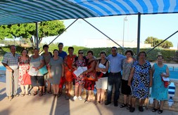 El viernes por la tarda también se celebró la clausura del primero de los cursos de gerontonatación. Tras la clase en el agua el grupo de mayores recibió un diploma y un obsequio de manos del Alcalde José Miguel Hernández, quien felicitó a los mayores por haber completado el curso y los instó a que continúen con la gerontonación y sigan disfrutando de los beneficios terapéuticos de practicar los ejercicios en el medio acuático.
