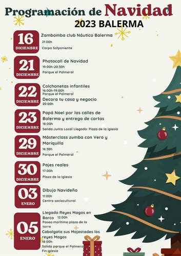 En el caso de Balerma, las actividades darán comienzo el 16 de diciembre con una Zambomba del Club Náutica en la carpa de Solponiente y se completarán con el photocall de Navidad en el Parque El Palmeral, las colchonetas infantiles, ‘Decora tu casa y tu negocio’, ‘Papá Noel por las calles de Balerma y entrega de cartas’, Masterclass de zumba con Vero y Mariquilla, ‘Pajes reales’, ‘Dibujo navideño’ y llegada de los Reyes Magos en barco y posterior cabalgata.