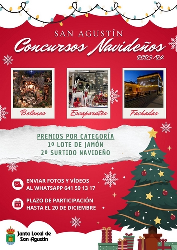 En San Agustín se ha previsto un concurso navideño de belenes, escaparates y fachadas con dos premios por categoría, el primero recibirá un lote de jamón y el segundo un surtido navideño, photocall de Papá Noel el 20 de diciembre, colchonetas infantiles el 29 de diciembre y la cabalgata.