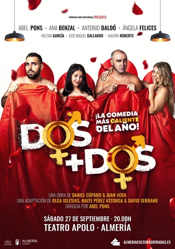 Qué mejor forma de empezar el nuevo curso que con humor. Es lo que propone ‘Dos+dos’, que se representará en Teatro Apolo el sábado, 27 de septiembre, a las 20:00 h. Una obra de teatro fresca, descarada y divertidísima que aborda, con mucho humor, el mundo del intercambio de parejas.