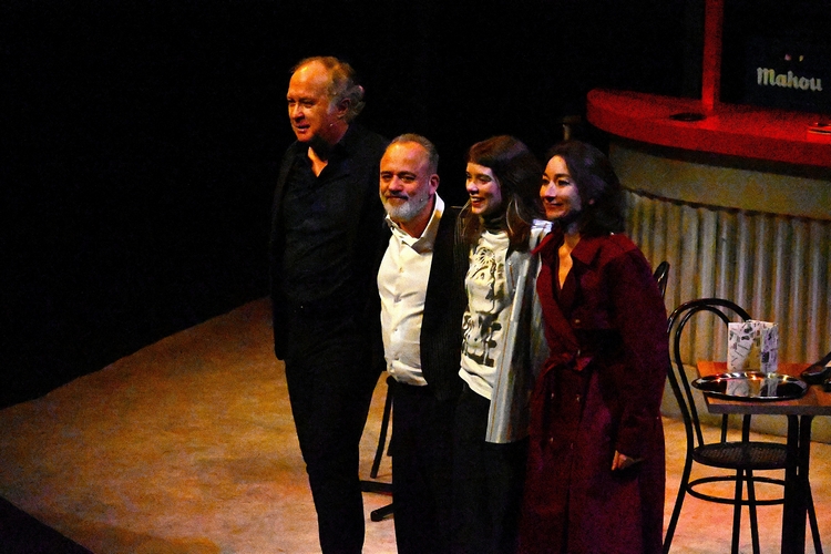 Hora y media estuvo el público el viernes atento al desarrollo de la obra ‘Los Yugoslavos’ con Javier Gutiérrez y Luis Bermejo, como grandes protagonistas acompañados por Marta Gómez y Alba Planas. La mayor parte de la acción tiene lugar en un bar, entre un camarero que vive con su esposa que está triste y con depresión y un cliente que habla a lo largo del montaje de una hija.