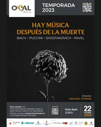 Con el título de ‘Hay música después de la muerte’, la Orquesta Ciudad de Almería (OCAL), dirigida con la habitual maestría de Michael Thomas, vuelve este otoño al encuentro de los almerienses con un nuevo concierto que tendrá lugar este próximo domingo, 22 de octubre, a partir de las 12.30 horas en el Teatro Apolo y que se enmarca dentro de la programación de otoño puesta en marcha desde el Área de Cultura, Tradiciones y Fiestas Mayores del Ayuntamiento de Almería.