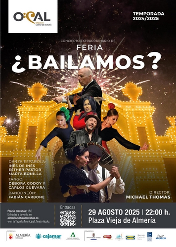 Cada año, el concierto de Feria de la Orquesta Ciudad de Almería ejerce de emocionante acto de celebración y encuentro entre músicos y público, haciendo de ‘bisagra’ entre el cierre de temporada y el inicio del nuevo curso, con propuestas artísticas y musicales siempre variadas y de una gran calidad. Este año, la cita, que volverá a estar dirigida por Michael Thomas, será el viernes, 29 de agosto, a las 22.00 horas, en la Plaza de la Constitución y bajo el sugerente título de “¿Bailamos?”.