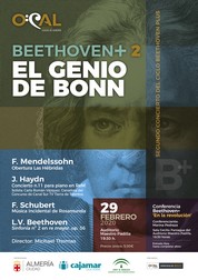 Tras una exitosa primera cita, en la que consiguieron colgar el cartel de “no hay entradas”, este sábado 29 de febrero es el turno de Beethoven+2 ‘El genio de Bonn’. El concierto tendrá lugar a las 19:30 horas en el Auditorio Municipal Maestro Padilla, aunque a las 18:30 horas la historiadora Marina Pedraza impartirá en el mismo recinto la conferencia Beethoven+: ‘En la revolución’. Las entradas, con un precio de cinco euros, están a la venta en la web www.almeriaculturaentradas.es.
