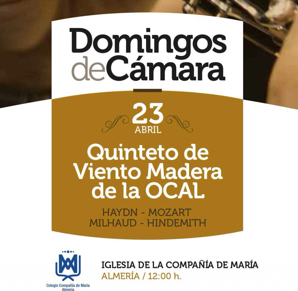 domingo volverá a sonar a música clásica. La Orquesta Ciudad de Almería (OCAL), cuyo patrocinador principal es el Ayuntamiento de Almería y Cajamar, ofrecerá un nuevo concierto de cámara en la Iglesia de la Compañía de María, a las 12, horas. Esta vez será el quinteto de viento madera, formado por cinco instrumentistas de primera como son Mari Carmen Reverte (flauta), Francisco José Moreno Carmona (oboe), David Calvo Carmona (clarinete), Joaquín Góngora Blanes (trompa) y Rafael Piqueras Yago (fagot) los que pongan banda sonora a la mañana de este domingo día 23.