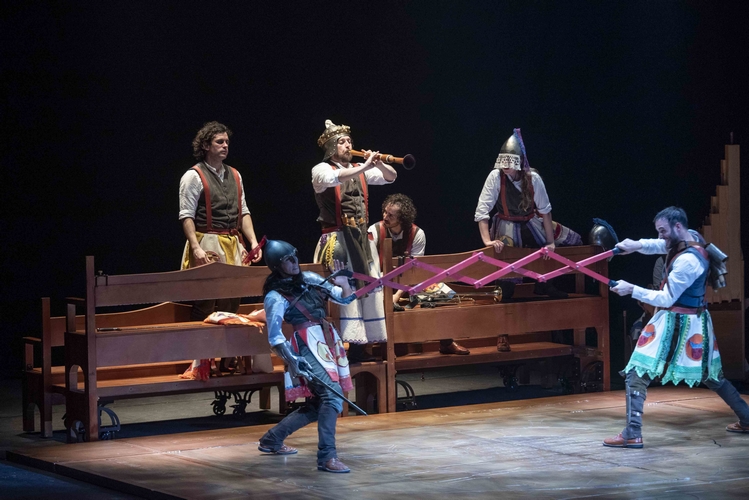 La puesta en escena destacó por su estética artesanal y simbólica. La escenografía, diseñada por Cecilia Molano y David Faraco, se transforma ante los ojos del espectador, construida y deconstruida por los propios actores, evocando paisajes y castillos. El vestuario, a cargo de Deborah Macías, ha aportado un toque medieval y colorido que realza la atmósfera fantástica de la obra.