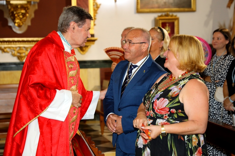 La Parroquia de San Isidro Labrador ha acogido esta noche la solemne Misa con motivo de la Exaltación de la Santa Cruz, oficiada por Don Mariano Delgado. Han estado presentes los ediles María del Mar Martínez y Bernardo Robles, que han acompañado al Hermano Mayor de la Mayordomía de la Santa Cruz, David Álvarez, y al resto de hermanos y fieles.
