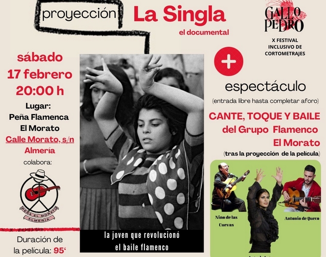 Estreno en Almería del documental ‘La Singla’, una historia única contada como un thriller de investigación, que busca a esta barcelonesa que revolucionó el baile flamenco con su sordera y pasión arrebatadora. Así clausura Verdiblanca la décima edición de su Festival Inclusivo de Cortometrajes ‘Gallo Pedro’. Será en sábado 17 de febrero, a las ocho de la tarde, en la Peña El Morato, acompañando a la proyección de la película el espectáculo protagonizado por Inés de Inés, Antonio de Quero y el Niño de las Cuevas.