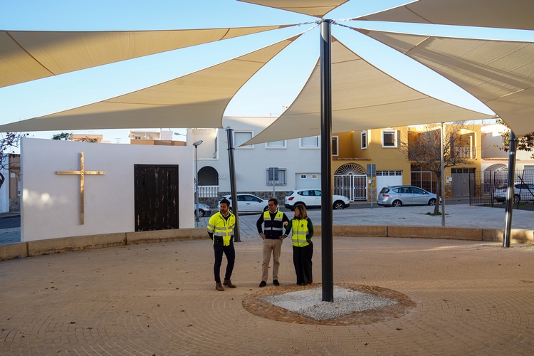 El alcalde, Francisco Góngorta, y el concejal de Obras Pública, Mantenimiento y Servicios, David Fernández, han visitado la Plaza Pompeya que acoge habitualmente numerosas actividades sociales, culturales y de ocio, además de desempeñar un papel estratégico en la celebración de las tradicionales fiestas de la Santa Cruz. “Con esta actuación se da respuesta a una demanda vecinal orientada a mejorar las condiciones de uso y disfrute del espacio público, especialmente durante los meses de mayor incidencia solar”, ha señalado Góngora.