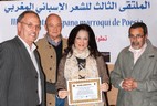 El encuentro contó también con un acto cultural multidisciplinario en Dar Sanaa (Puerta de la Reina), en el que los poetas participantes recibieron un premio. También se presentó la exposición de pintura ‘Colores del Andalus’ del prestigioso pintor marroquí Mohamed Bakkali y hubo un gran concierto de música multicultural hispano-marroquí, donde destacó la musicalización que el cantautor español Juan José Cibaja (Juanjo argolla&pañuelo) hizo de varios de los poemas que se habían presentado en la revista “Zéjeles del estrecho”. Envueltos por la magia del momento, el entrañable cantautor Juan José Cibaja prometió ponerle música a uno de los zéjeles que la poeta Lidia Prado se ha comprometido a crear a raíz del encuentro.
