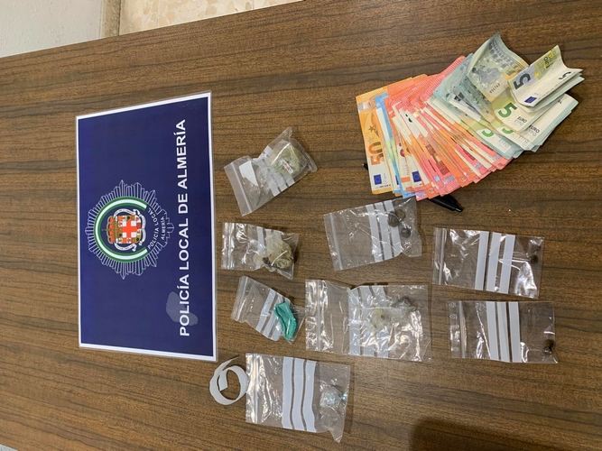 Efectivos de la Policía Local de Almería han detenido a un individuo, identificado con las iniciales I.A.E, de 44 años y natural de Almería, al que se le intervino varios envoltorios con hachís, marihuana y cocaína, así como más de mil euros en metálico, por lo que fue detenido como presunto autor de un delito contra la salud pública.
