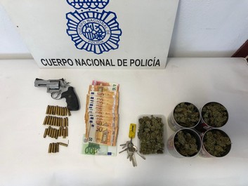 Durante el registro, fueron intervenidas por la Policía Nacional 399 plantas de marihuana, 4.500 gramos de cogollos de marihuana, un revólver magnum 357 y 35 cartuchos, 129 bombillas, 66 focos, 73 transformadores, tres extractores, tres filtros de aire, tres básculas de precisión y 1.270 euros en efectivo.