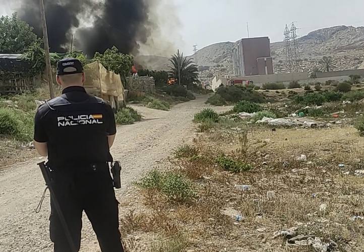 La Policía Nacional en Almería ha rescatado a una mujer que vagaba desorientada en mitad de un incendio en una zona de infraviviendas del barrio de El Quemadero.