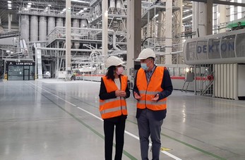 La presidenta de Parlamento de Andalucía, Marta Bosquet, ha visitado las instalaciones del Grupo Cosentino en la localidad almeriense de Cantoria para conocer sus procesos productivos premiados en materia de innovación y sostenibilidad.