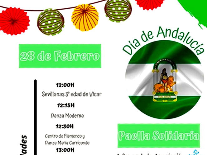 El Ayuntamiento de Vícar se ha visto obligado a cancelar todas las actividades previstas para mañana dentro de la programación cultural que se había preparado para conmemorar el Día de Andalucía. La previsión de lluvias durante toda la jornada ha desaconsejado la celebración de estas actividades, todas ellas a celebrar al aire libre, por lo que se ha optado por su cancelación definitiva. Según informa la AMET se prevén lluvias que podrían ser intensas durante toda la jornada, especialmente entre las doce del mediodía y las doce de la noche.