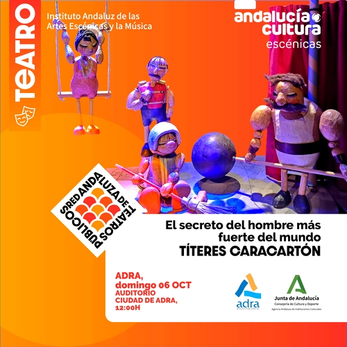 El Festival Internacional de Títeres D’Hilos, cita ya tradicional de la programación organizada por el Ayuntamiento de Adra, da inicio en la ciudad milenaria este domingo, 6 de octubre, a las 12:00 horas, a cargo de Títeres Caracartón, con la obra ‘El secreto del hombre más fuerte del mundo’. Una cita ideal para la que ya están las entradas disponibles en taquilla o en la web de www.giglon.com por 5 euros, la entrada individual, y 15 euros el abono para todos los espectáculos del festival.