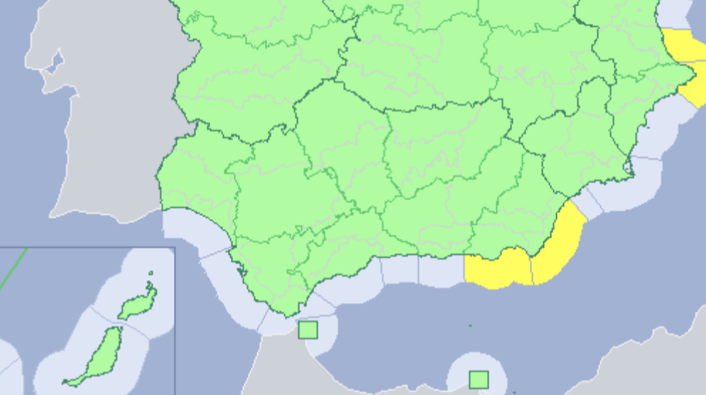 Las lluvias fuertes y las tormentas activarán aviso amarillo en Baleares, ya que en Mallorca y Menorca se podrá acumular hasta 20 litros por metro cuadrado en una hora, mientras que los vientos de hasta 80 kilómetros por hora motivan el aviso de riesgo en Tarragona y Castellón.