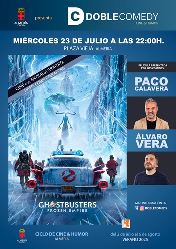 Pasado el ecuador del ciclo con los primeros miércoles del mes de julio, la Plaza de la Constitución será escenario una semana más de la proyección de una nueva película en el marco del ciclo ‘Doble Comedy’. Tras ‘Hook’, ‘Jumanji’ y ‘Top Gun Maverick’ los días 2, 9 y 16, la cita de este miércoles, 23 de julio, será con la quinta película de la popular saga de ‘Cazafantamas’, concretamente con ‘Ghostbusters: Frozen Empire’. Como es habitual, será a partir de las 22.00 horas, con entrada libre y con la presentación previa de los cómicos Paco Calavera y Álvaro Vera. Será la cuarta de las seis veladas programadas.