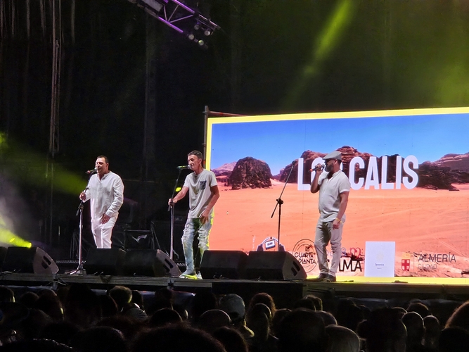El trío de Los Calis tenía ganas de escenario y apenas treinta segundos pasaron de la salida de Bordón 4 y su entrada. ‘Quien te riza el pelo’ o ‘Vente conmigo flor’ adornaron el inicio de la que posiblemente fuese la más flamenca del quinteto, con algunos finales con cierta jondura. Dramas cotidianos como ‘Cariño, basta ya’, ‘No aguanto más’ o ‘Buenas noches, soledad’, “que parece de la Pantoja”, bromearon, siguieron el repertorio. Eso sí, estaba claro y así lo pedía el público desde el minuto uno que las más esperadas eran “Una paloma blanca”, que cantaron dos veces, y ‘Heroína’.