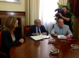 El subdelegado del Gobierno en Almería, Andrés García Lorca, y el consejero de la Unión Deportiva Almería, Juan Carrillo Martínez, han firmado un protocolo de colaboración para impulsar la lucha contra la violencia de género. Se trata de un convenio promovido por la Delegación del Gobierno en Andalucía junto con la Delegación del Gobierno para la Violencia de Género del Ministerio de Sanidad, Servicios Sociales e Igualdad. En el acto también ha participado la jefa de la Unidad contra la violencia sobre la mujer, Raquel Contreras.