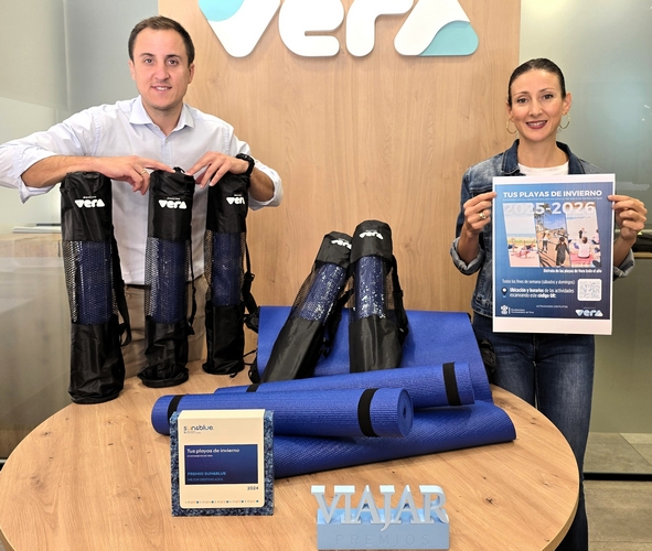 El alcalde de Vera, Alfonso García, y la concejal de Promoción de la Ciudad, Carolina Pérez, han anunciado durante la presentación de la actividad que el Ayuntamiento entregará esterillas a todos los usuarios que acudan este sábado a las playas veratenses y participen en las actividades programadas