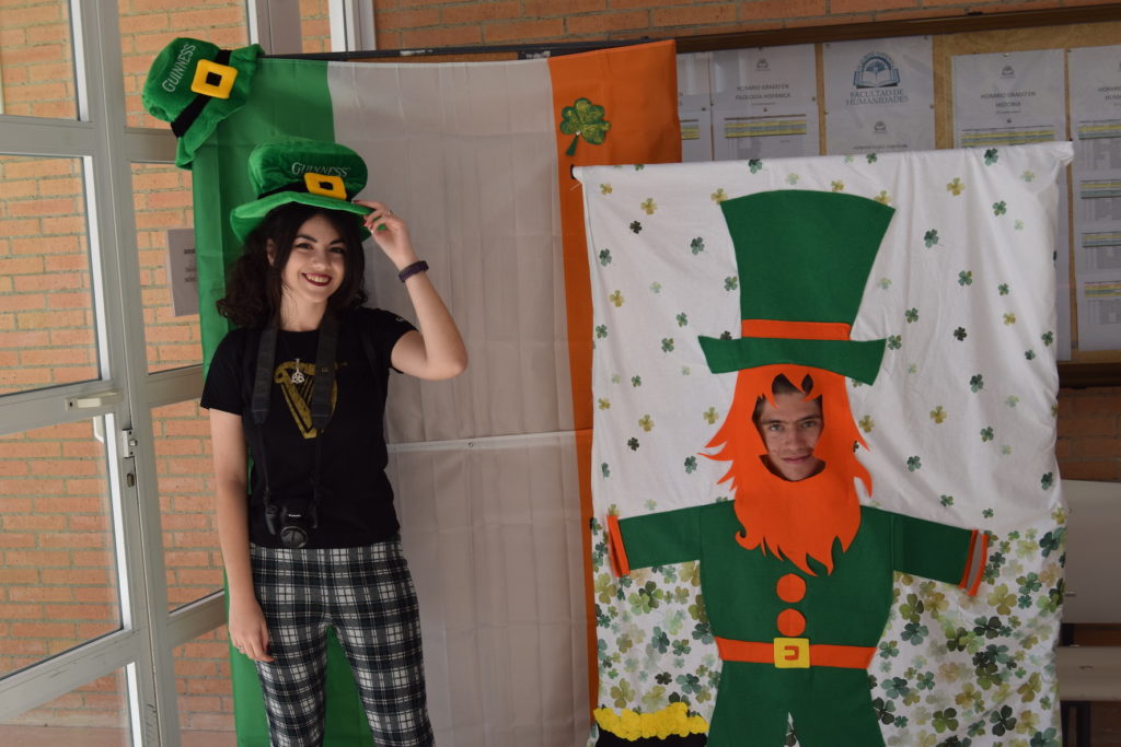 elementos típicos de Irlanda, sus enseñas y sus referentes, han dado la ‘bienvenida’ a quien ha entrado en el Edificio C de Humanidades en este viernes. Realmente, el Día de San Patricio es este próximo domingo, 17 de marzo, celebración a escala mundial a la que se suman cada año más ciudades, pocas de España, pero sí Almería. La UAL es una vez más ‘responsable’ de ello, al organizar la tercera edición de sus Jornadas de Estudios Irlandeses en el campus, confirmando así su consolidación. De hecho, el nivel de las conferencias ha sido muy elevado y el éxito de participación ha venido a avalar esta apuesta del Grupo de Investigación HUM 874 ‘Mujeres, literatura y sociedad’ y del Proyecto ‘Cuerpos en tránsito 2’.