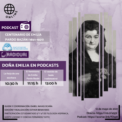 Bajo la coordinación de Isabel Navas, catedrática de Teoría de la Literatura y Literatura Comparada de la Universidad de Almería y autora de los guiones, se han organizado varias actividades para conmemorar este día. En concreto, han grabado tres podscats: dos sobre su biografía y obra, y uno que es una dramatización de un monólogo teatral de Pardo Bazán titulado ‘El vestido de boda’. Todos ellos han sido grabados en Radio UAL, desde donde serán emitidos en directo este miércoles a través de la plataforma Blackboard.