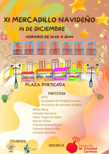 La Plaza Porticada de Berja acoge este sábado 14 de diciembre la undécima edición del Mercadillo Navideño que impulsa la Fundación Madre Trinidad Carreras con la colaboración del Ayuntamiento de Berja.