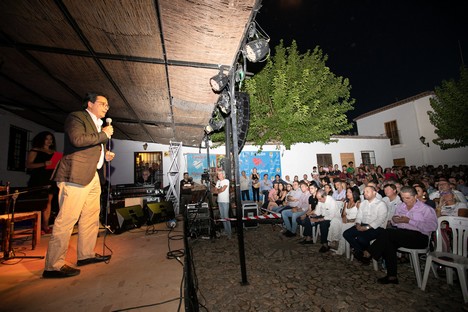 El alcalde de Fondón repasó la trayectoria del Festival recordando sus humildes orígenes y cómo en la actualidad se ha convertido en un gran y multitudinario acontecimiento, y aprovechó la oportunidad para las gracias a la Diputación, a José Antonio López Alemán, a las personas que trabajan en el Festival, y a los artistas por “su compromiso con nuestro pueblo”.