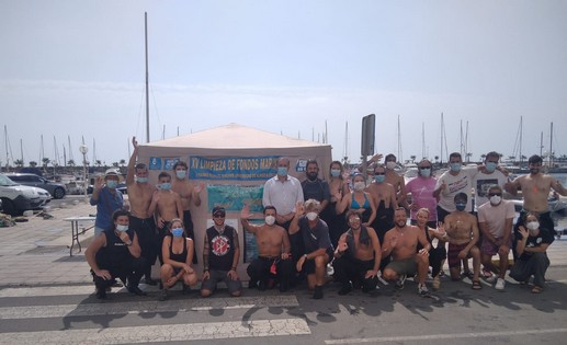 La XV Jornada de Limpieza de Fondos Marinos en Roquetas de Mar recoge casi 150 kilos de basura