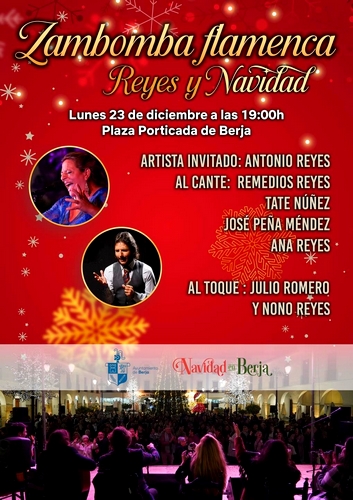 El lunes 23 de diciembre, la Plaza Porticada de Berja se llenará del arte y la tradición del flamenco con la celebración de la Zambomba Flamenca ‘Reyes y Navidad’. Un evento que no puede faltar en la programación de la Navidad en Berja y que comenzará a las siete de la tarde.