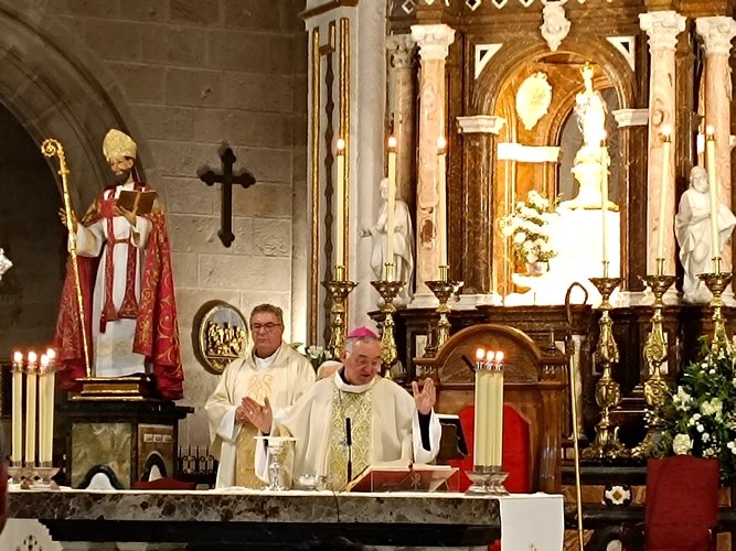 Ha ocupado la sagrada cátedra y predicado la Palabra de Dios, el obispo diocesano, Monseñor Antonio Gómez Cantero, asistido por el Deán del cabildo de canónigos, Juan José Martín Campos, y el diácono Antonio Asensio Montoya, así como acólitos que han ayudado al oficio religioso. Igualmente, han participado de la Eucaristía los sacerdotes mayores, revestidos con estola blanca, residentes de la Casa Sacerdotal San Juan de Ávila.