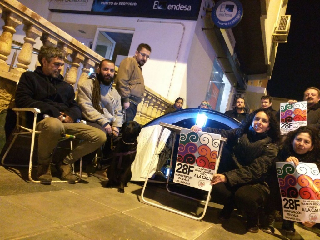 el marco de la Semana de Lucha Social organizado por las Marchas por la Dignidad en todo el Estado, en Almería un grupo de activistas acamparon la tarde del lunes frente a una oficina de la compañía eléctrica Endesa en la Avenida Cabo de Gata para denunciar la “pobreza energética” que, afecta a las clases populares de Almería.