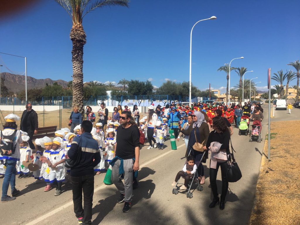 carnaval ya ha llegado hasta los centros educativos de Pulpí, con diversas fiestas y desfiles que han recorrido las calles del municipio. Los primeros en salir a la calle fueron los alumnos del C.P.R “San Miguel” de El Convoy, que el pasado miércoles, vestidos de pintores, bomberos, policías y médicos, realizaron su desfile de carnaval. Con la misma temática, el jueves fue el turno de los alumnos del C.P.R “San Miguel” de San Juan de los Terreros y también la fiesta de carnaval de los mayores del Centro de Estancias Diurnas “Encarnación y María Peregrín”, que este año apostaron por un disfraz de arlequín elaborado por ellos mismos junto al personal del centro. Hoy viernes, las calles de Pulpí han acogido el desfile de carnaval del CEIP “Emilio Zurano”, donde entre los alumnos y maestros se han podido ver sirenas, medusas, buceadores, marineros y piratas. A continuación, alumnos del C.P.R “San Miguel” de Pozo Higuera han disfrutado también de su particular desfile de carnaval por las calles de la pedanía. También durante toda esta semana, el CEIP “Federico García Lorca” de La Fuente ha celebrado el carnaval con una serie de actividades enmarcadas en el proyecto educativo del centro: El Carnaval de los animales, música y juegos. El programa de actos de carnaval continúa esta tarde con la fiesta de los chicos y chicas de Casa Tejá, donde habrá buñuelos y chocolate para todo el que asista disfrazado, además del desfile de la Escuela Infantil “Los Duendecillos”.
