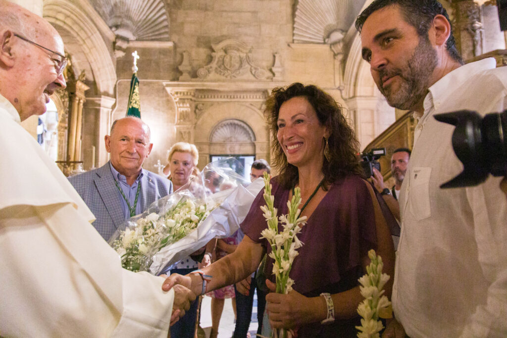 Todos han acudido con flores, principalmente nardos, para nuestra Virgen del Mar, en una ceremonia emocionante y donde los sentimientos estaban a flor de piel. Al mediodía ha comenzado la ceremonia, en la que han participado la alcaldesa de Almería, María Vázquez, el presidente de la Diputación, Javier A. García, la consejera de Agricultura, Carmen Crespo, y el consejero de Sostenibilidad, Medio Ambiente y Economía Azul, Ramón Fernández-Pacheco, entre otras autoridades, así como colectivos y miles de ciudadanos.