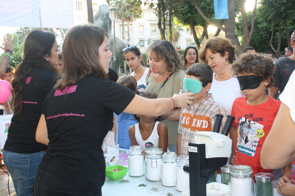 El pasado viernes, 29 de septiembre, unos 600 investigadores-la cifra más elevada de participantes de Andalucía- salieron a la calle a mostrar su trabajo de forma cercana. Por unas horas abandonaron sus laboratorios y mostraron su labor a las más de 10.000 personas que acudieron a la cita. Mayores y niños abarrotaron los escenarios en los que se desarrolló la Noche de los Investigadores.