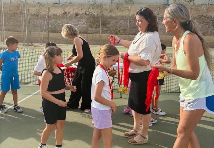 La Escuela de Tenis Vícar clausuró en la tarde del pasado martes 17 de junio el curso 2024/25 con la presencia de más 200 personas, entre autoridades, familiares, alumnos. El acto de clausura tuvo lugar en la Ciudad Deportiva de Vícar, donde se entregaron los correspondientes trofeos del Torneo de Tenis Fin de Curso, disputado entre los alumnos de la Escuela de Tenis, que dio comienzo el 1 de Mayo y finalizó el 13 de Junio con la participación de jugadores de todas las categorías, desde Prebenjamin, hasta Cadete. Además de los trofeos, se entregaron medallas a todos los alumnos y alumnas de la Escuela de Tenis Vícar que han participado a lo largo del curso y en el propio Torneo.