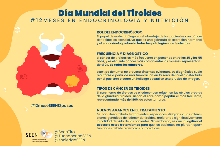 La SEEN, en el marco de su campaña ’12 meses en Endocrinología y Nutrición, 12 pasos hacia la salud‘, con motivo del Día Mundial del Tiroides, que se celebra el próximo 25 de mayo, dedica el mes de mayo a esta patología. En el marco de esta iniciativa, que persigue concienciar a la sociedad sobre la importancia de las enfermedades endocrinológicas, la sociedad científica incide en que los tratamientos de precisión son fundamentales, ya que son terapias dirigidas a las características específicas de una enfermedad y un paciente determinado.