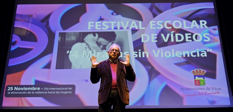 Trás el éxito de la mara de ayer contra la Violencia de Género y la lectura del Manifiesto en contra de la Violencia hacia las mujeres, los actos conmemorativos con motivo del 25N que organiza el Área de Igualdad del Ayuntamiento de Vícar, han tenido continuidad esta mañana en el Teatro Auditorio Ciudad de Vícar con la celebración del Festival Escolar de Vídeos ‘4 Miradas sin Violencia’, un evento en el que han participado todos los centros educativos del municipio y que ha consistido en la proyección de sus propuestas audiovisuales para sensibilizar sobre la violencia de género. Para el alcalde de Vícar, Antonio Bonilla, que ha presidido el acto, “el objetivo es sensibilizar a la población en su conjunto sobre la lacra que es la violencia contra la mujer y para ello queremos hacer partícipes a todos los colectivos, y de un modo muy especial a la comunidad educativa”.