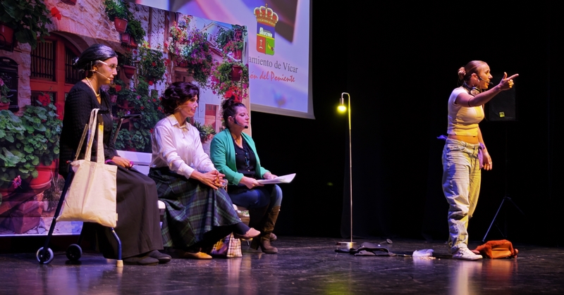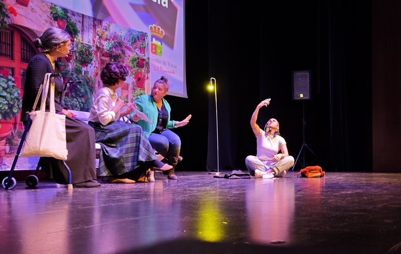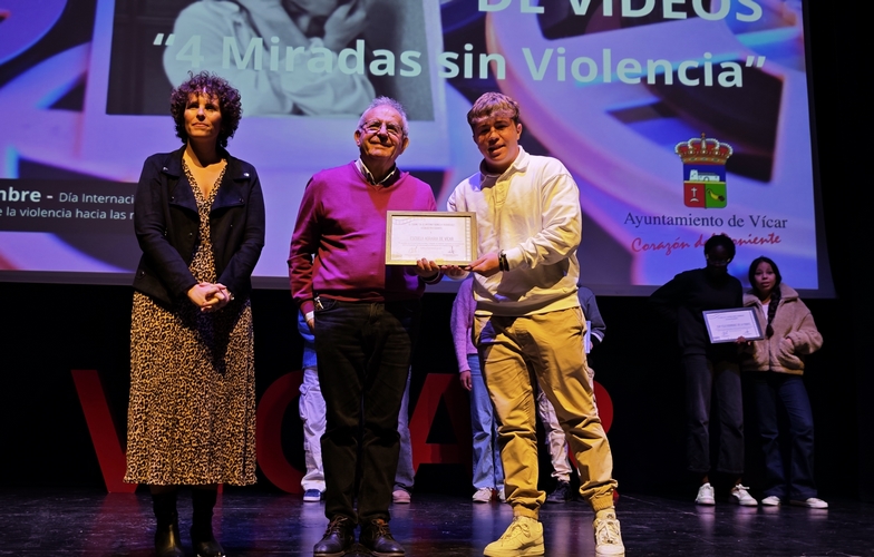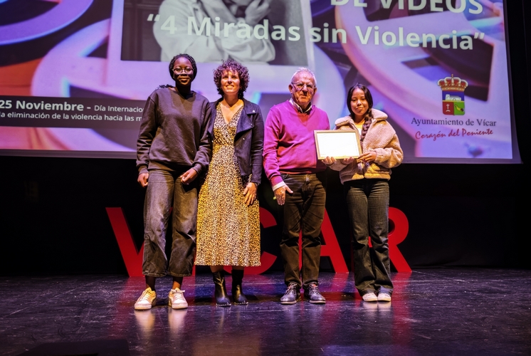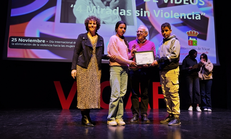 Por espacio de dos horas, los alumnos y alumnas de todos los colegios, institutos, centros de adultos y de la Escuela Agraria Vícar, han podido visionar el enfoque que sus compañeros y compañeras de los distintos centros han dado a sus vídeos de denuncia hacia la violencia de género. Del mismo modo que en el resto de las actividades enmarcadas en el 25N, el Festival Escolar de Vídeos ha contado también con la colaboración de las asociaciones y entidades colaboradoras con el grupo ERACIS+ de Vícar. El acto ha finalizado con la entrega de un diploma a cada uno de los centros participantes y a Innova Almería, entidad del tercer sector, integrante de ERACIS+. Durante la jornada, los alumnos han podido disfrutar también de una representación teatral a cargo de la Asociación Protegidas, bajo el nombre de “Cuatro mujeres, una historia”.