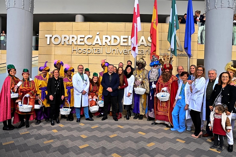 La última visita de la mañana ha sido al Hospital Universitario Torrecárdenas, donde acompañados con sus pajes, el concejal de Cultura, Diego Cruz, y el director-gerente del HUT, Manuel Vida, es han llevado los regalos a los niños y niñas que allí están ingresados y que, por tanto, mañana no podrán estar en casa para abrirlos.