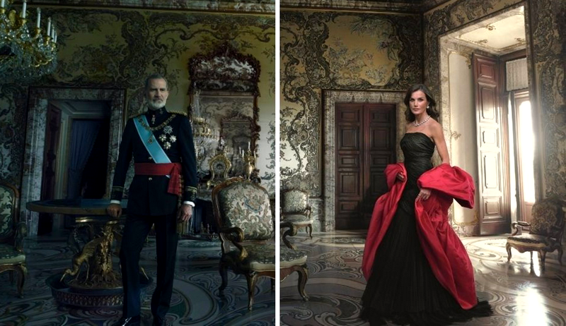Los retratos, los mayores que ha realizado hasta la fecha Leibovitz, conforman un díptico que se complementa entre sí al ofrecer una misma escena dividida en dos en la que el Rey aparece ataviado con el uniforme de gala del Ejército de Tierra y la Reina luce un vestido negro con un chal fúcsia y que, a ojos del espectador, al haberse utilizado la impresión en tela en lugar de papel fotográfico, recuerda los retratos al óleo de otras épocas como los realizados por Goya o Velázquez.