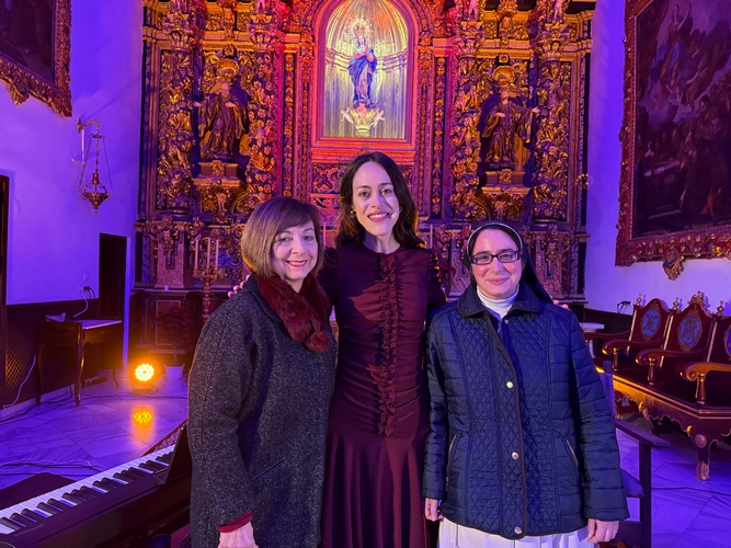 A lo largo y ancho de una hora, María del Mar Poyatos ha deleitado al público, que agotó todas las entradas, en el recital benéfico a favor de esta congregación, con la fusión de la palabra y la música, la poesía mística del ‘Cántico espiritual’, de San Juan de la Cruz, y las composiciones a piano creadas expresamente por la intérprete y musicóloga almeriense.