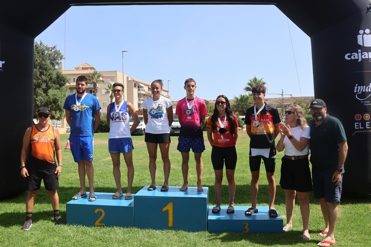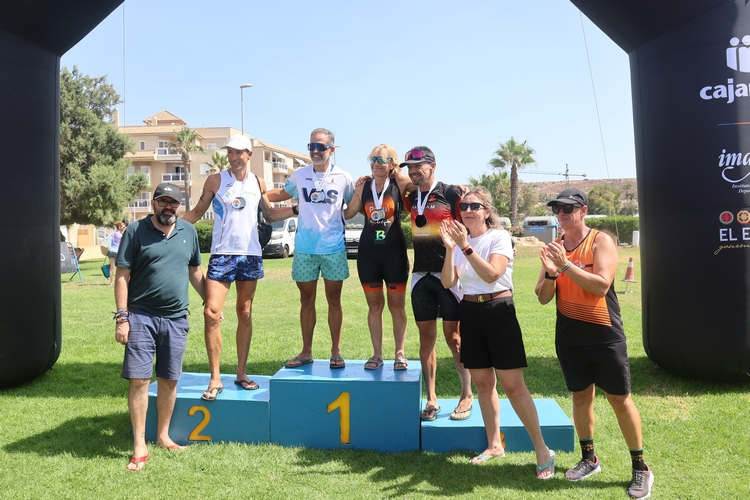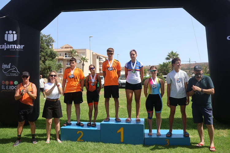 La concejala de Deportes, María José Martín, ha sido la encargada de dar la salida tanto de la categoría Adulto como de las Escolares y posteriormente de realizar la entrega de premios a los ganadores junto al presidente de la Junta Local, Inocencio Gabriel Manzano y el presidente del Club Triatlón El Ejido, Francisco Fuentes.