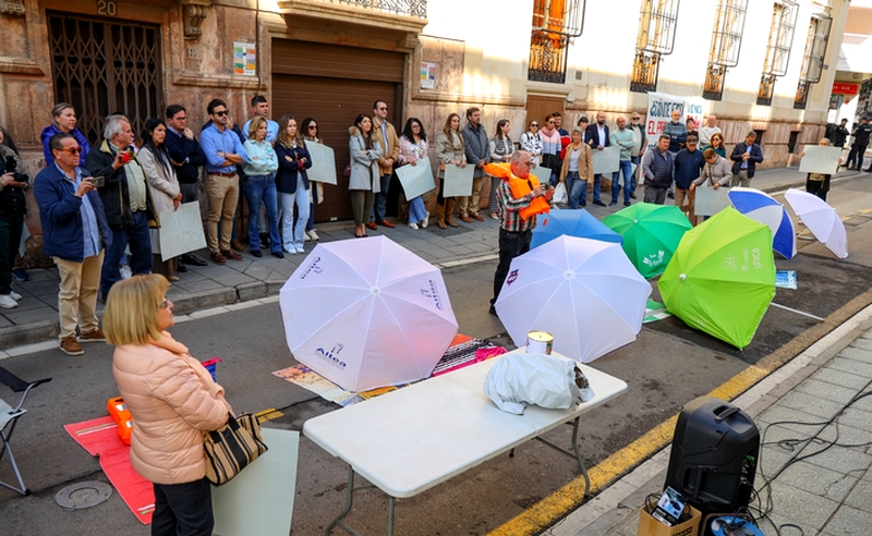 Vecinos de Balerma, con toallas y sombrillas, acompañados por el equipo de Gobierno en el Ayuntamiento de El Ejido y por la Junta Local, han participado en la manifestación convocada por la Mesa de Trabajo a las puertas de la Subdelegación de Gobierno en Almería para reclamar una solución urgente al grave problema de erosión de la playa.