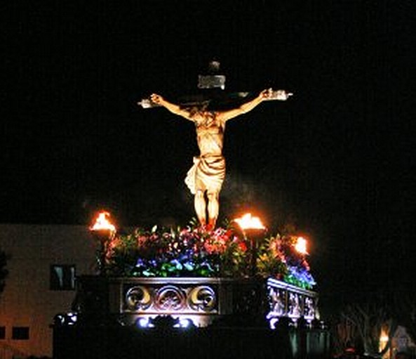 La imagen del Cristo del Perdón, esa imagen de un cuerpo roto y dolorido, nos avisa del riesgo que corremos en este mundo. Los cristianos somos los primeros que nos alejamos de Dios. La sociedad nos absorbe, enfocamos nuestras vidas hacia lo fácil y cómodo. La Iglesia nos invita a una etapa evangelizadora marcada por la alegría. Se nos invita a renovar el encuentro con el Señor. También el Señor nos dice que arriesguemos. Siempre nos espera con los brazos abiertos. Nos ayuda a levantar la cabeza y volver a empezar. Aún en medio de las peores angustias. Por eso, esta mirada, este silencio, valen más que muchos discursos y tratados. Esta noche, todos somos llamados a esta nueva “salida misionera”. Salid de vuestras comodidades y llegad a todos los rincones que necesitan la luz del Evangelio.